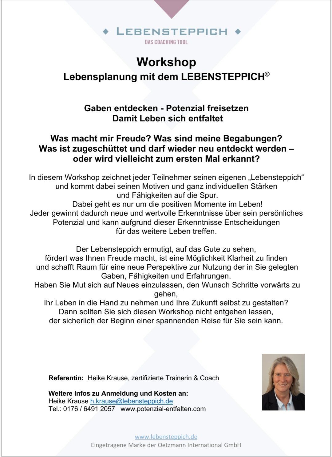 Der Workshop " Lebensteppich" kann generell von Einzelpersonen,
